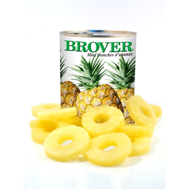 BROVER PINEAPPLE SLICES 32 MINI IN SYRUP 850ml x 12Tin / Ctn